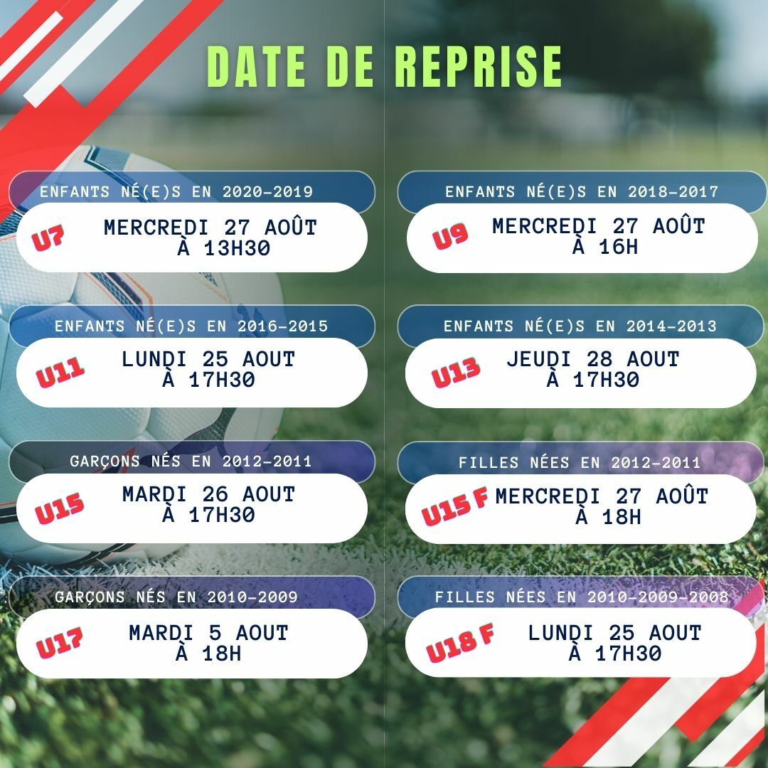 Voici les dates de reprise des différentes catégories, pour la saison 2025-2026![]()