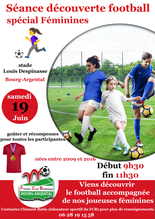 La première aura lieu le samedi 12 juin de 9H30 à 11H30. séance ouverte aux garçons et filles né(e)s entre 2009 et 2016.👫⚽️