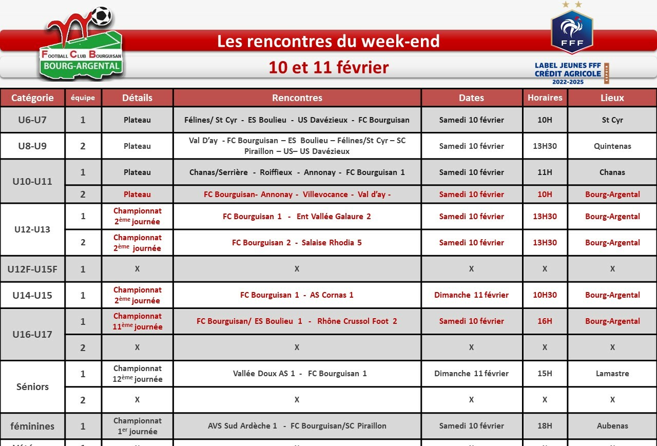 Vous trouverez dans l'image Ă droite tous le matchs prĂ©vu ce week-end !Â