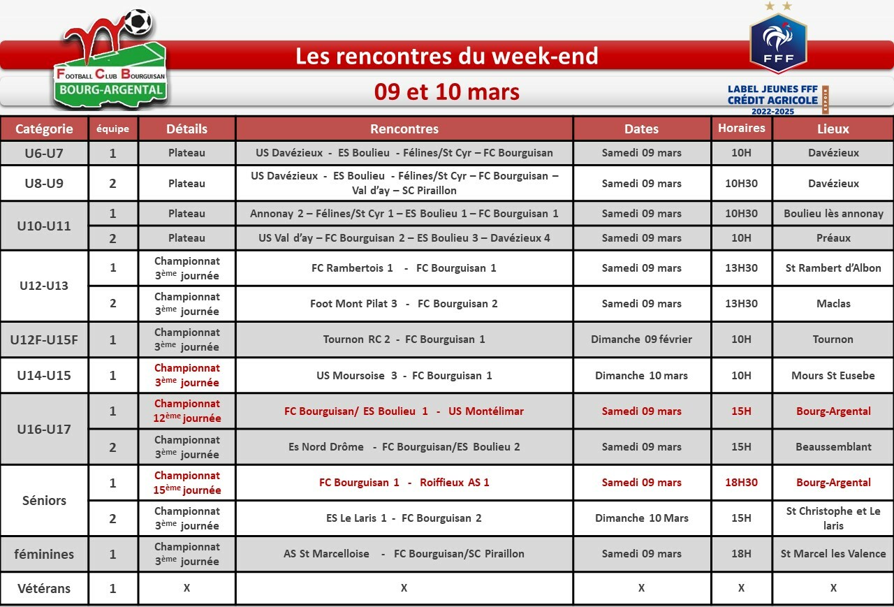 Vous trouverez dans l'image Ă droite tous le matchs prĂ©vu ce week-end !Â