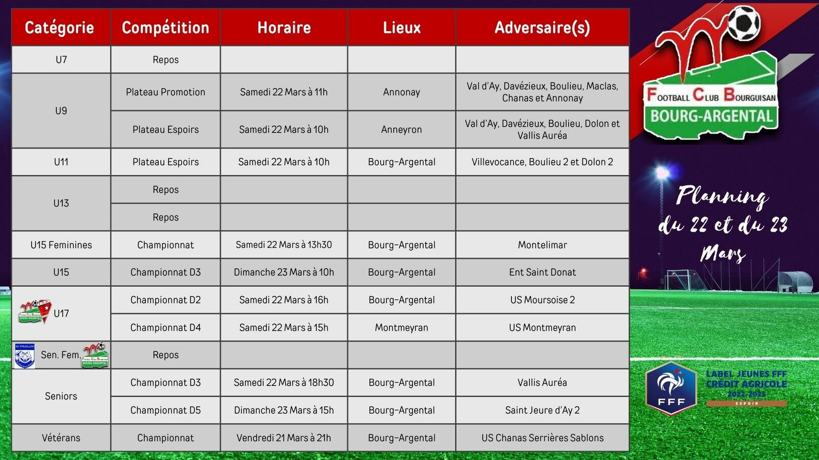 Les U7, les U13 et les séniors féminines seront au repos, ![]()