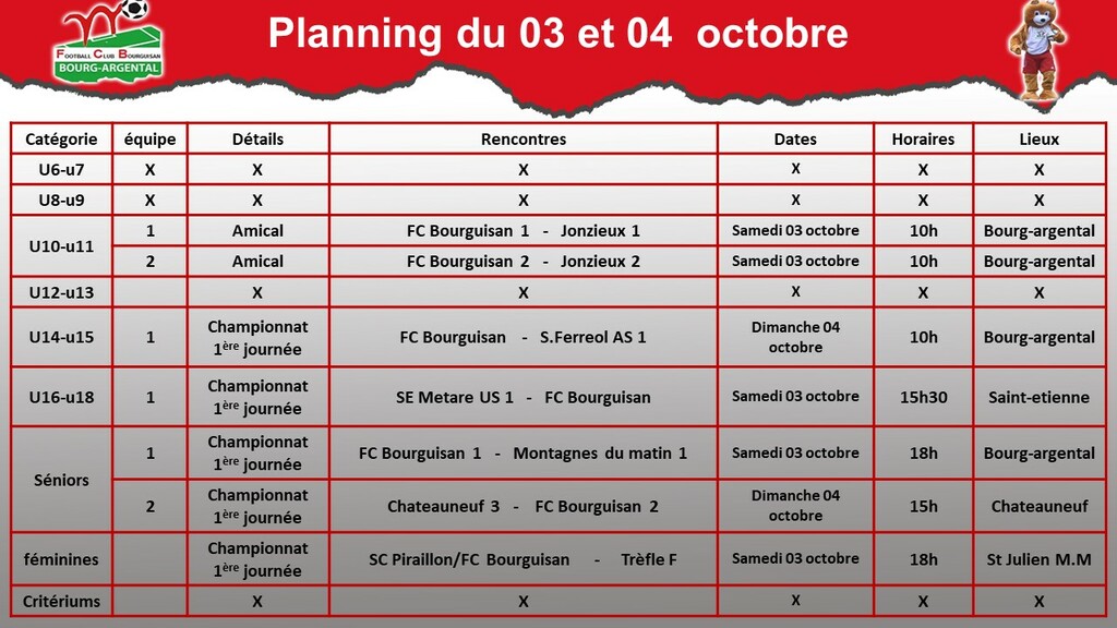 planning du week-end
