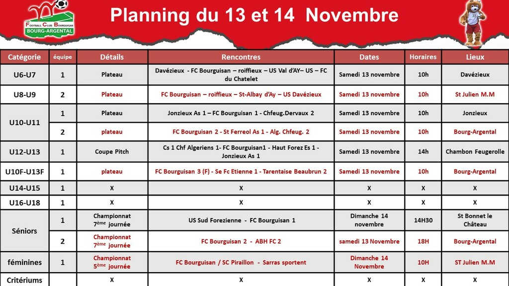 Vous trouverez dans l'imade Ă droite tous les matchs prĂ©vu ce week-end !Â