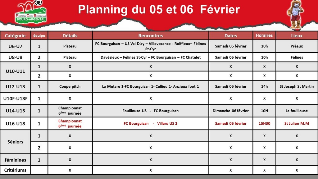 Vous trouverez dans l'imade à droite tous les matchs prévu ce week-end !