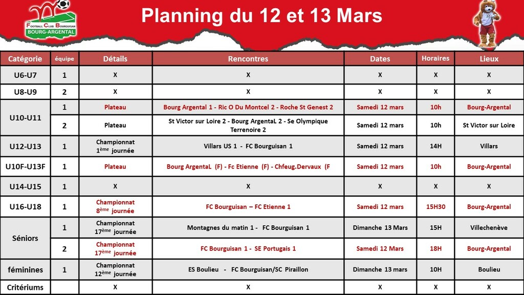 Vous trouverez dans l'imade Ă droite tous les matchs prĂ©vu ce week-end !Â