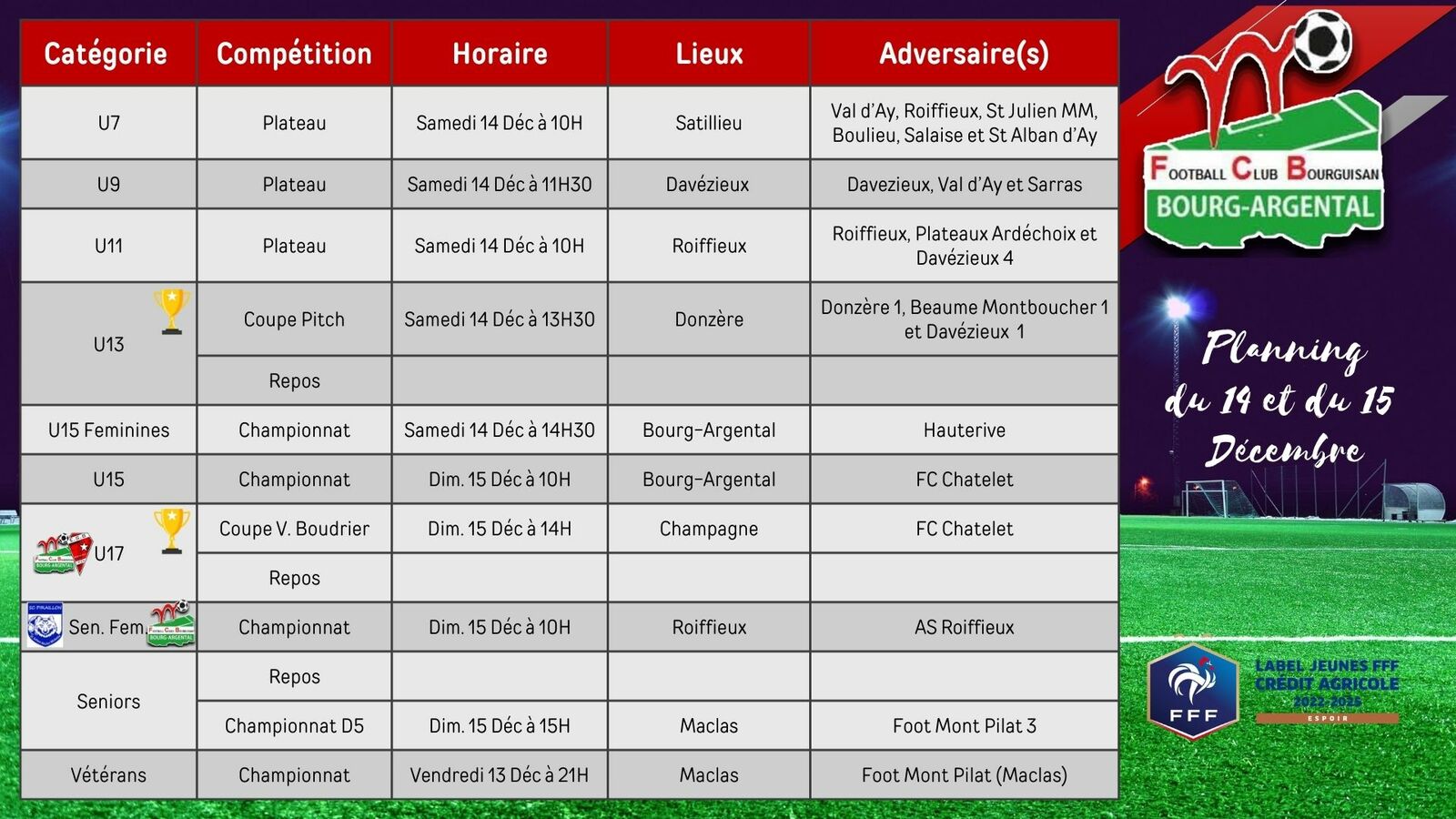 A noter également dimanche, l'équipe 1 des U17 qui joueront également contre Chatelet en coupe, les seniors 2 à Maclas et les seniors féminines à Roiffieux.