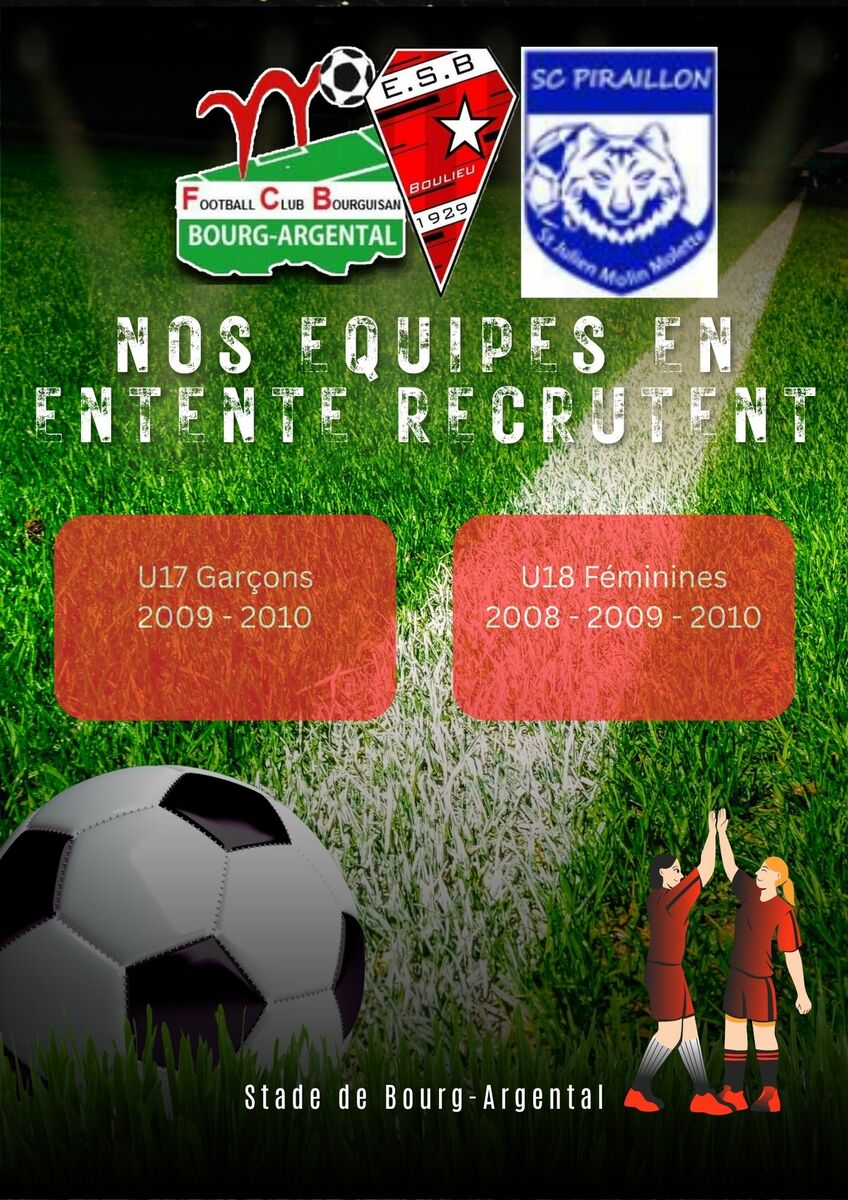 Nous sommes à la recherche de joueurs et de joueuses, pour nos deux catégories, que nous sommes en entente, avec l'Etoile Sportive Boulieu et le Sporting Club Piraillon.